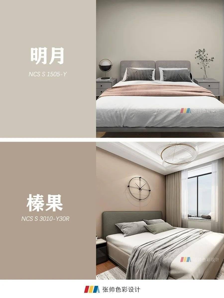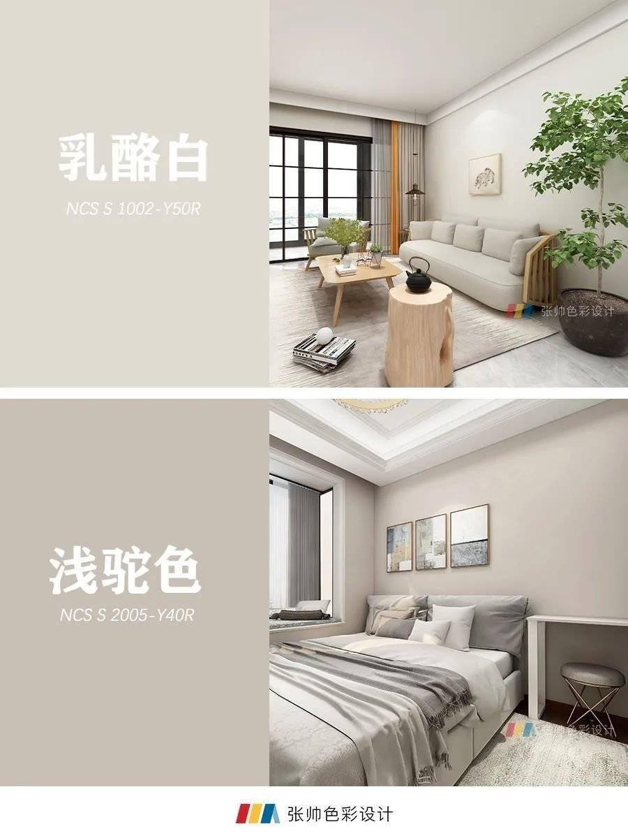 百搭耐看的乳酪白適合大面積涂刷,淺淺的色調不會影響采光,也不會顯得局促,暖暖的淺駝色用在臥室溫馨且雅致。
